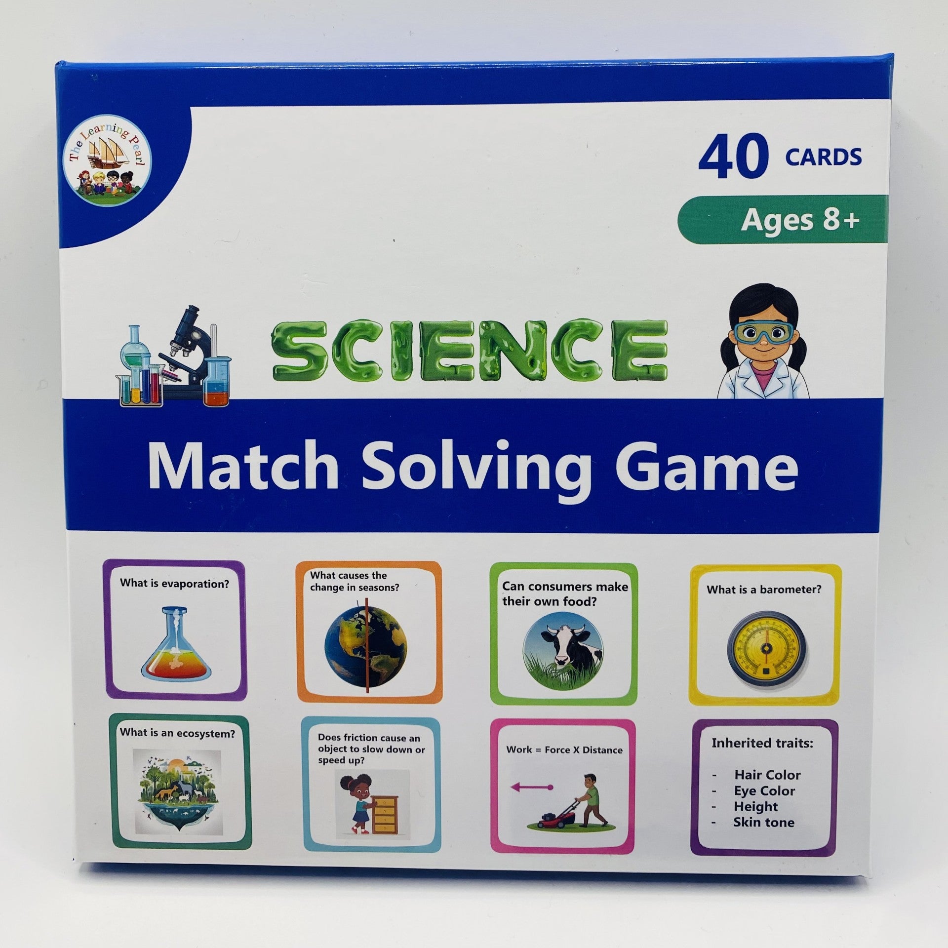 Interactive game that helps students learn key science concepts. Through engaging matching challenges, players explore topics like biology, chemistry, and physics, reinforcing critical ideas while improving memory, problem-solving, and understanding of science fundamentals. 40 cards with a question and corresponding answer. The game is based on 5th-grade science standards and is great for test preparation (EOG).